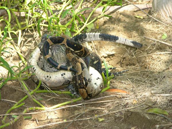 Boa enjoying an iguana (Garrobo)
